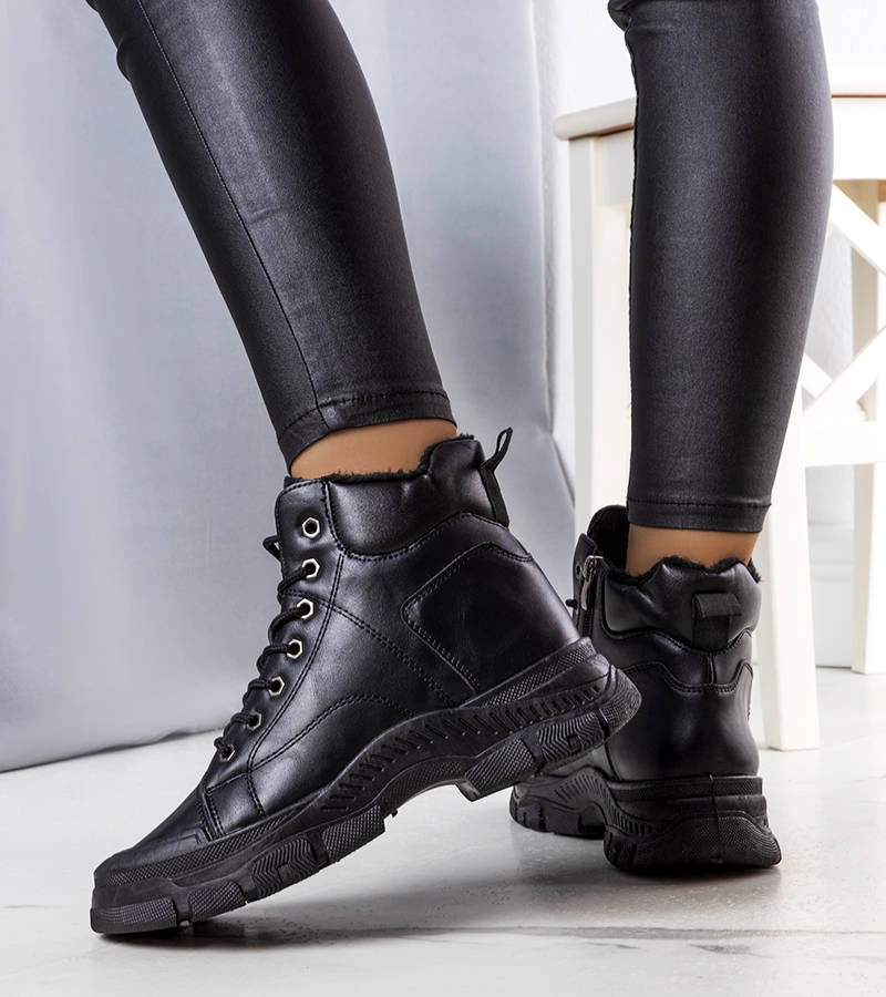 Fekete melegített platformos csizma Niklas