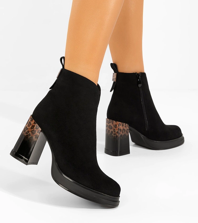 Fekete bokacsizma leopárdmintás oszlopsarkú Delora