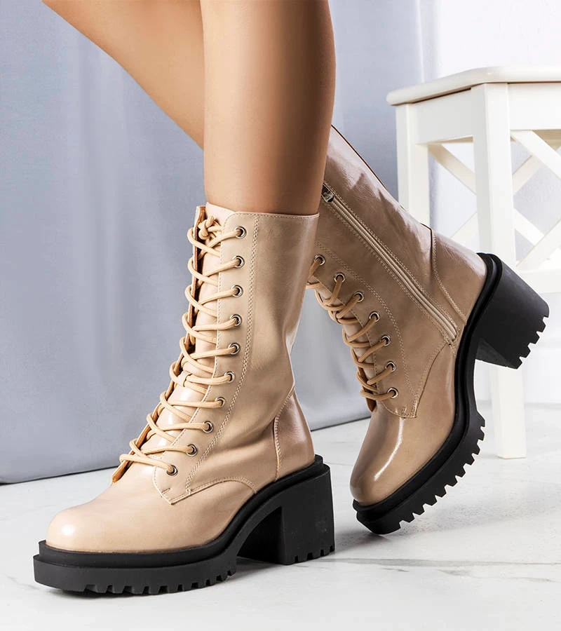 Asma bézs lakkozott bokacsizma