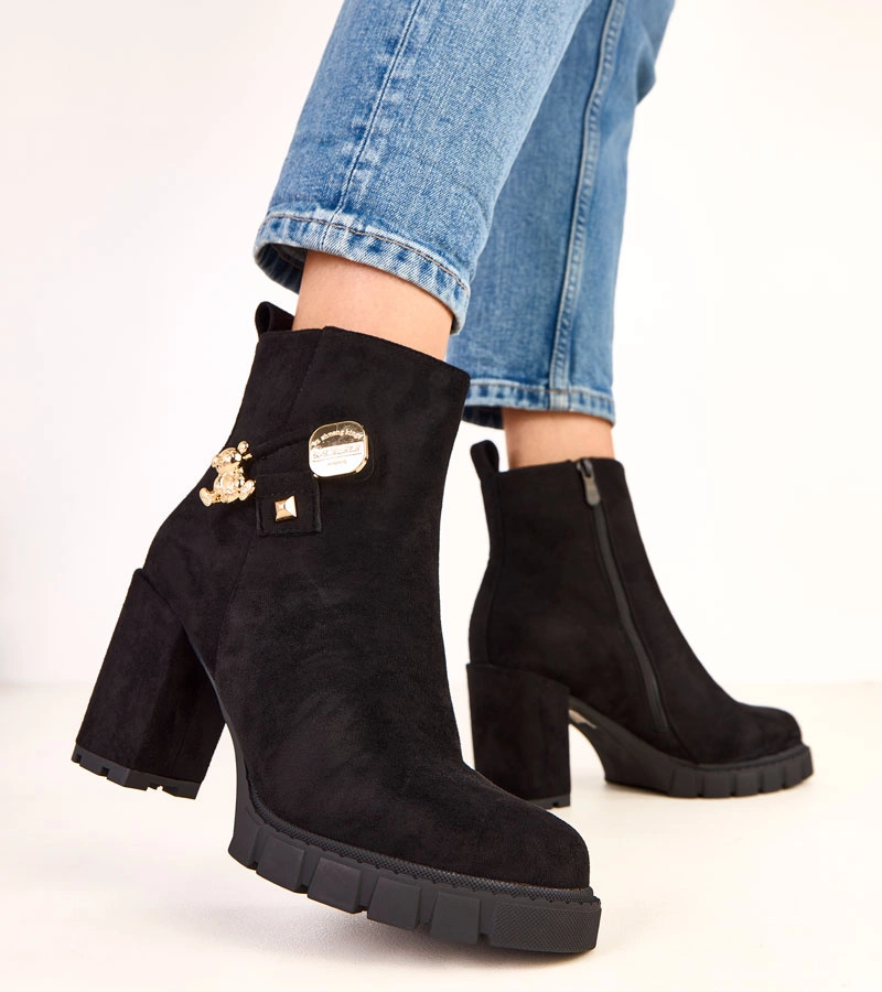 Fekete vastag sarkú bokacsizma arany macis díszítéssel Naste