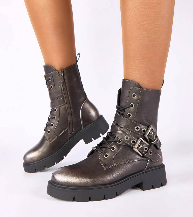 Fekete bokacsizmák fém betétekkel, eko-zsámbékkal Branda.