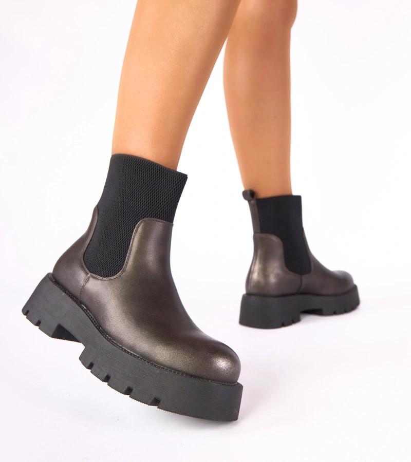 Barna klasszikus bokacsizma elasztikus betéttel, eko-bőr Maiza