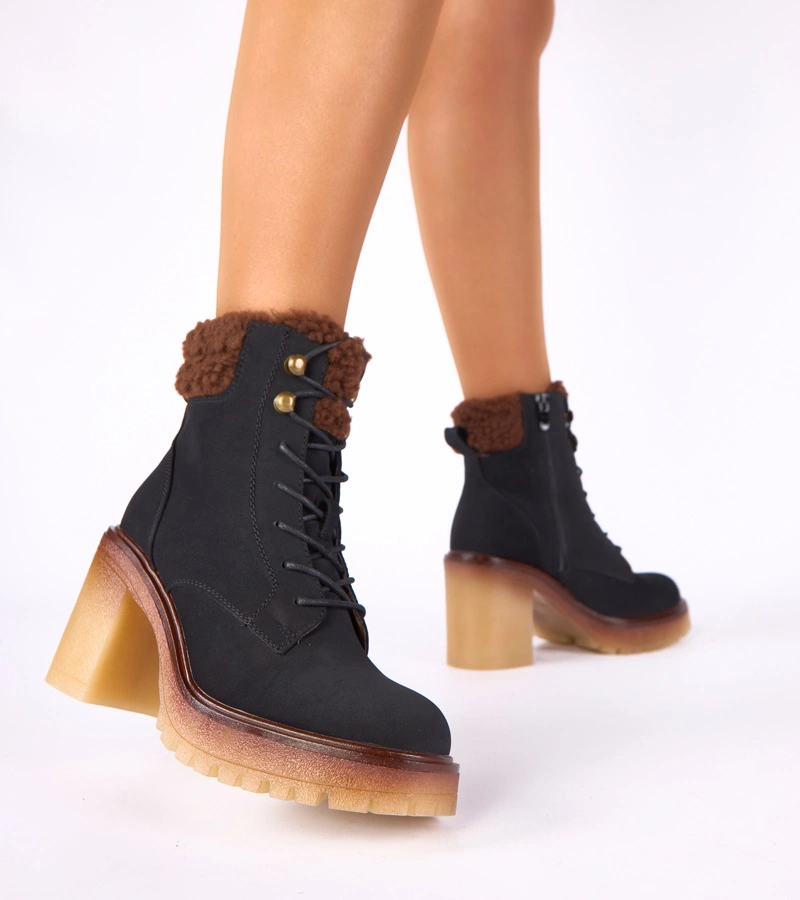 Fekete hálós bokacsizma oszlopos sarokkal Melarka