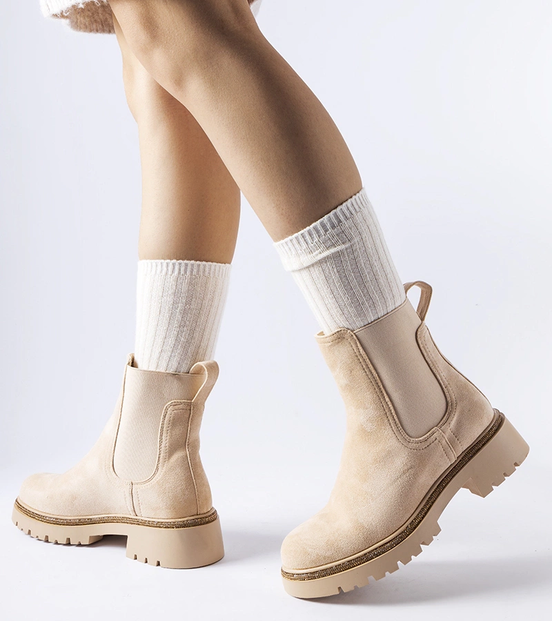 Cirkóniadíszes bézs bokacsizma Papanice.