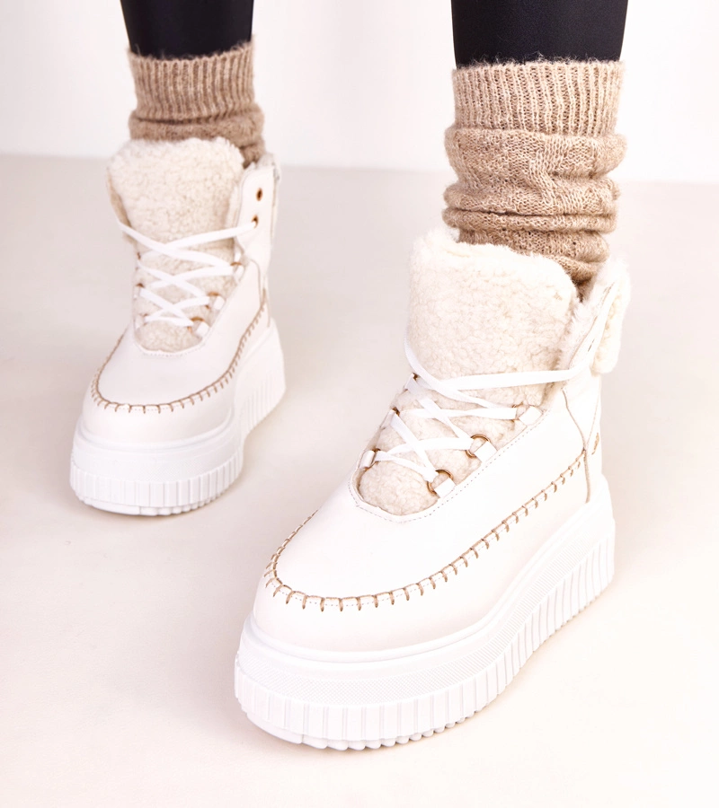 Fehér melegített bokacsizma négyzetes orrú Bel