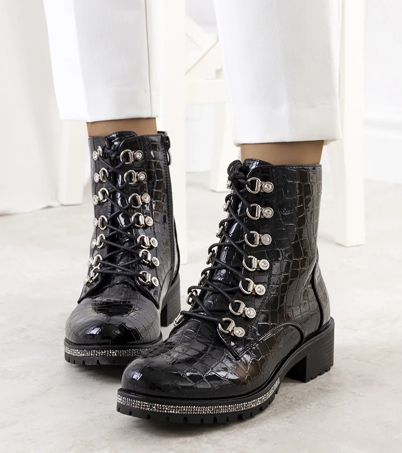 Fekete díszes cirkóniával díszített bokacsizma Ramsey