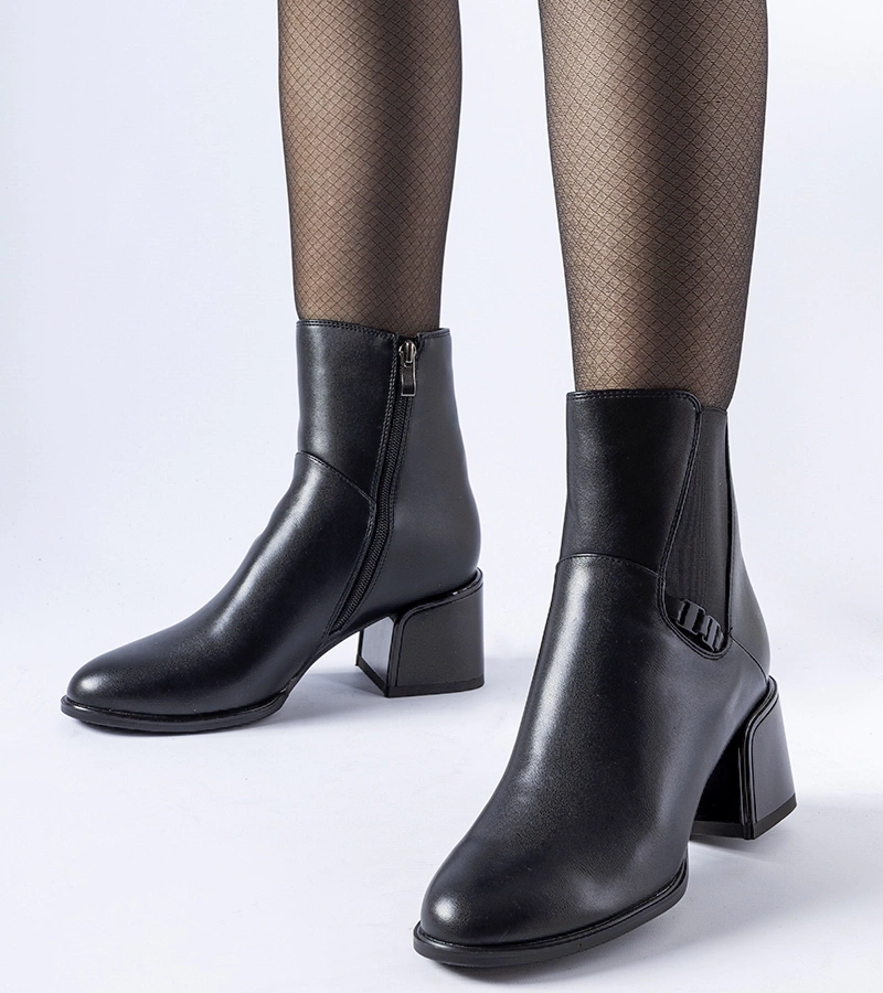 Fekete bélelt bokacsizma vastag talpon - Maria
