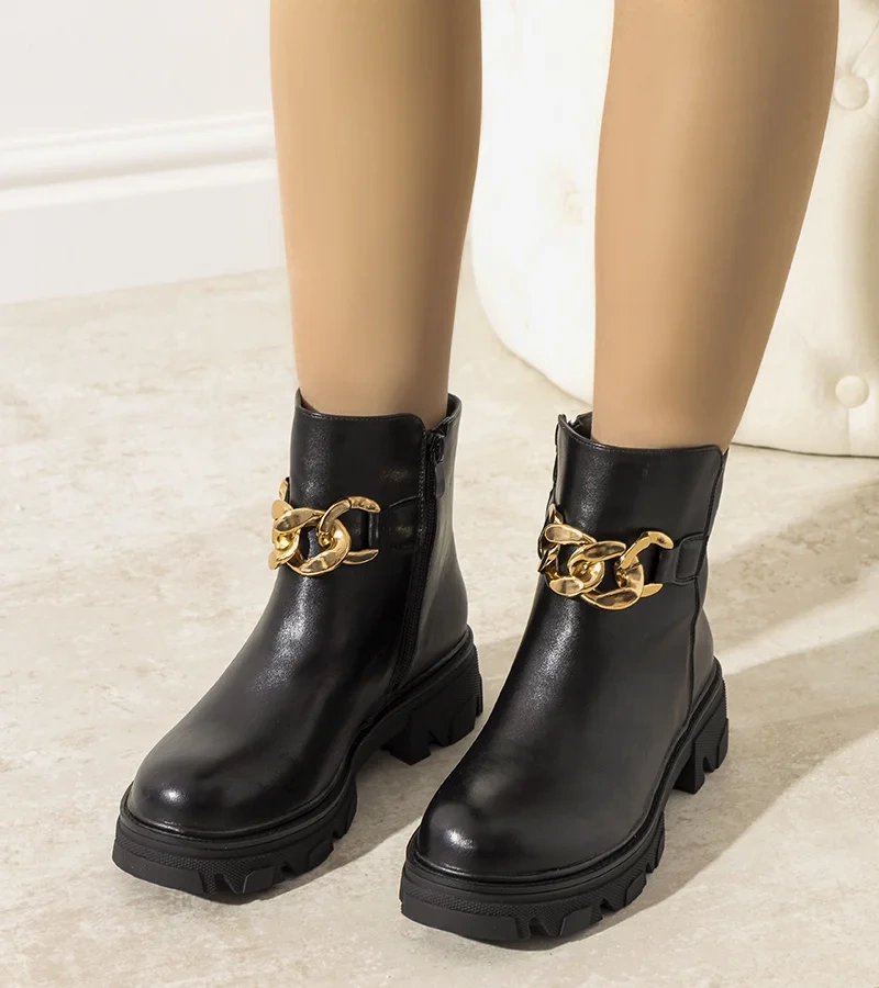 Fekete lakkozott bokacsizma lánccal díszített Sentley