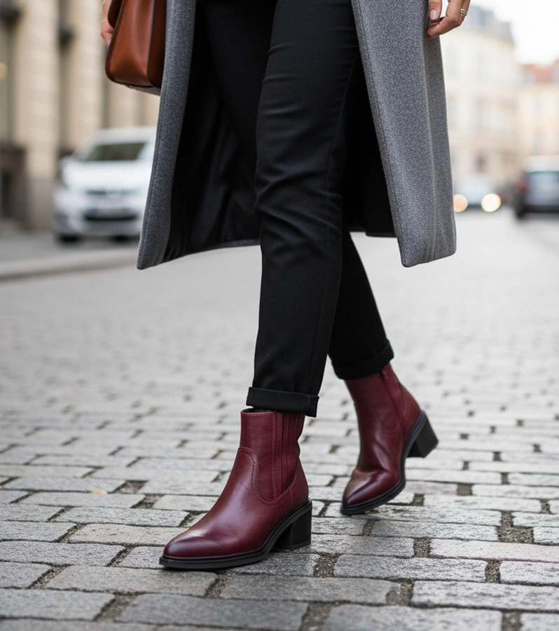 Bordó rugalmas betétes vastag sarkú bokacsizma Sesie