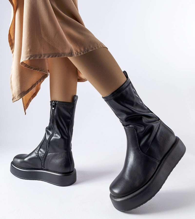 Fekete díszes zöld cérnával díszített Rocco bakancsok
