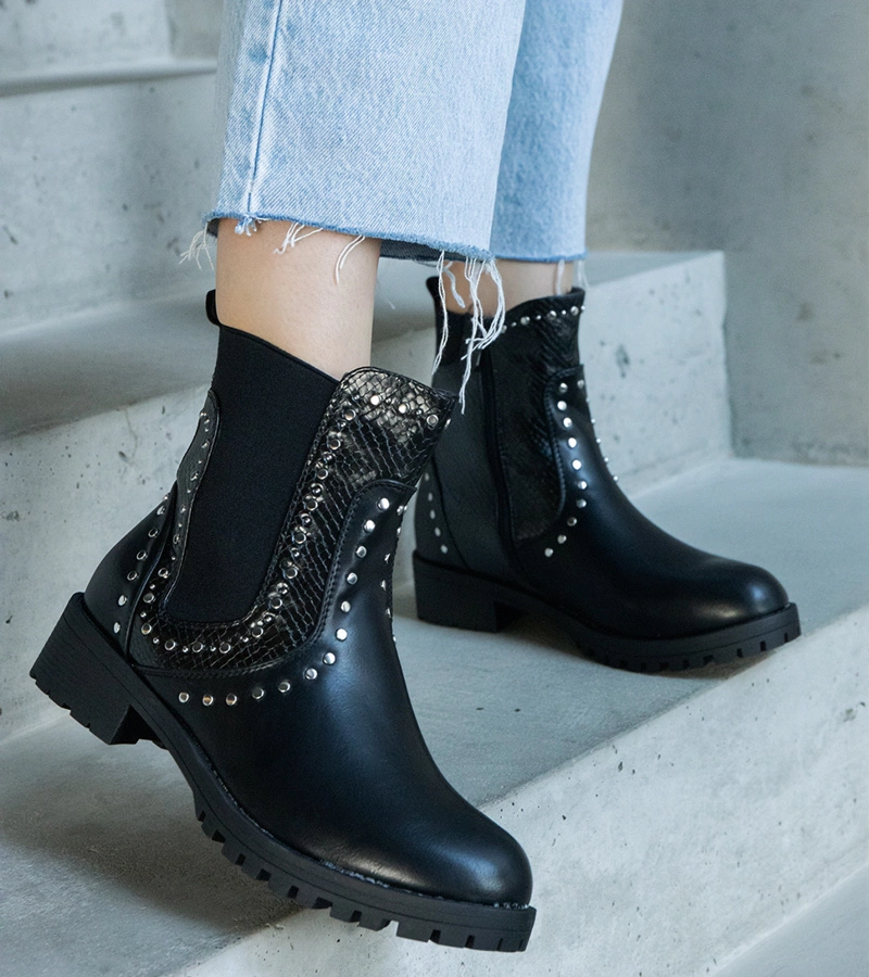 Fekete csillogó bokacsizma szegecsekkel Hialeah