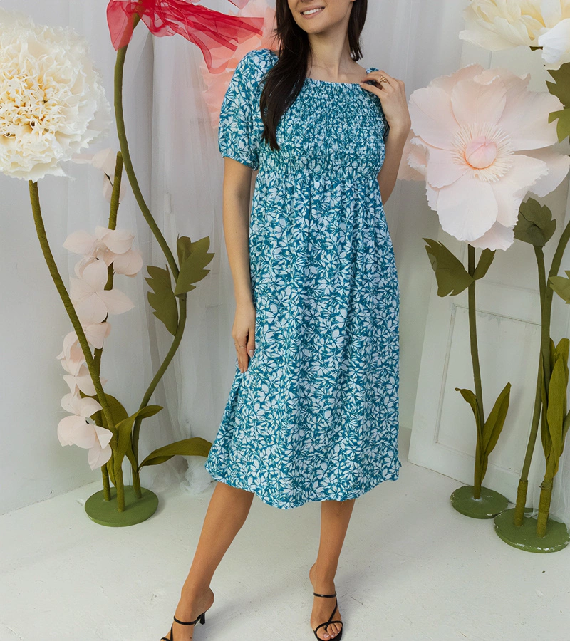 Kék maxi ruha apró virágokkal Hajden