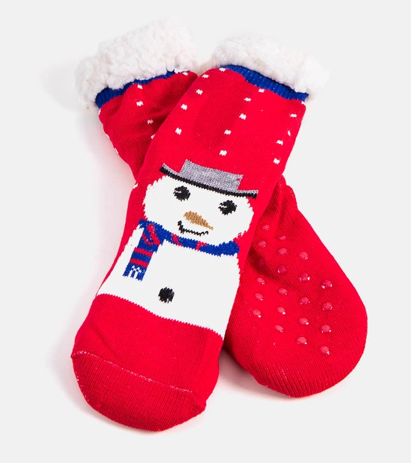Piros melegített zokni a Challi hóemberrel