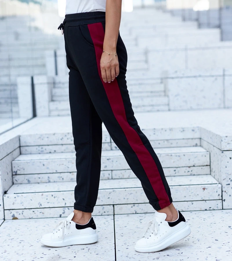 Fekete melegítőnadrág piros csíkokkal Bel