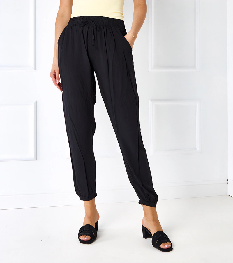 Fekete női széles pliszírozott nadrág Sijam
