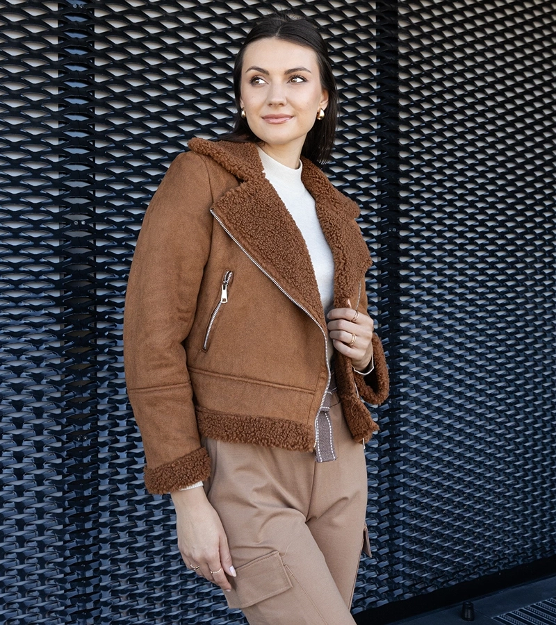 Brązowy ocieplany kożuch Sakenra po węgiersku to: "Barna bélelt bunda Sakenra".