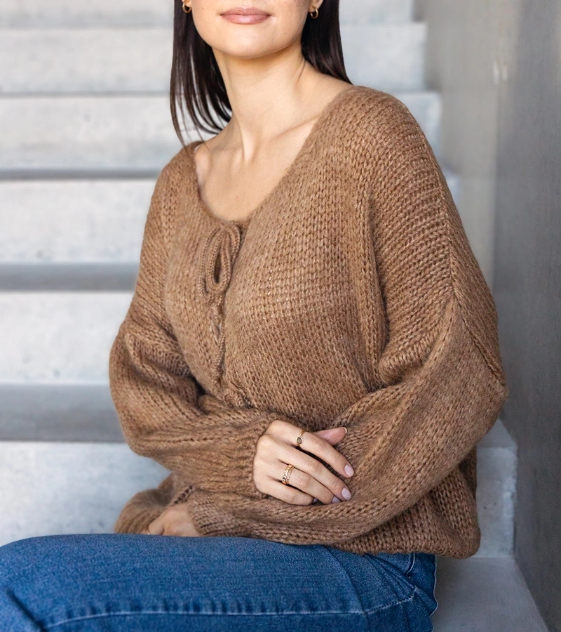 Cédrus színű, laza fazonú Essana klasszikus pulóver.