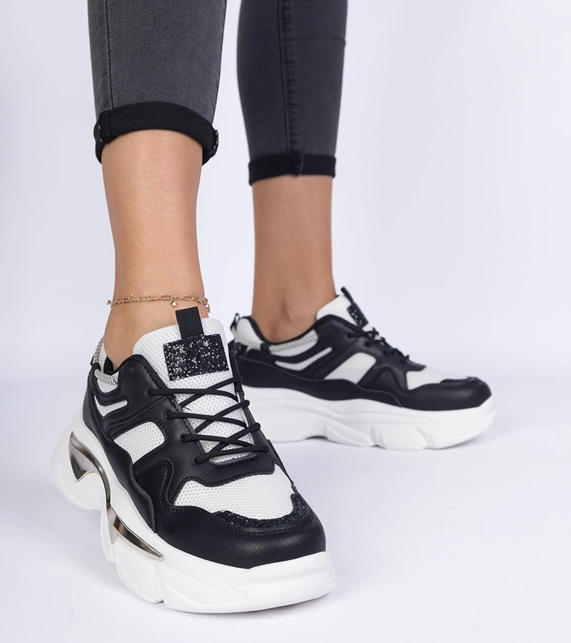 Luciana fekete-fehér tornacipők vastag fűzővel