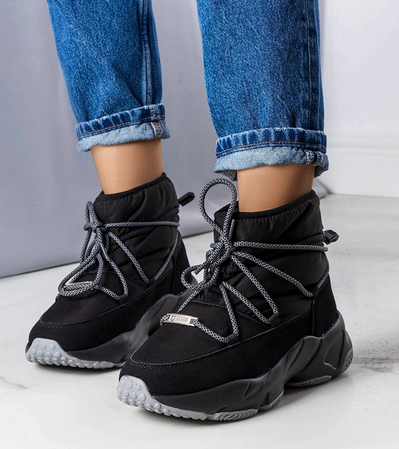 Fekete melegített platformos csizma Niklas
