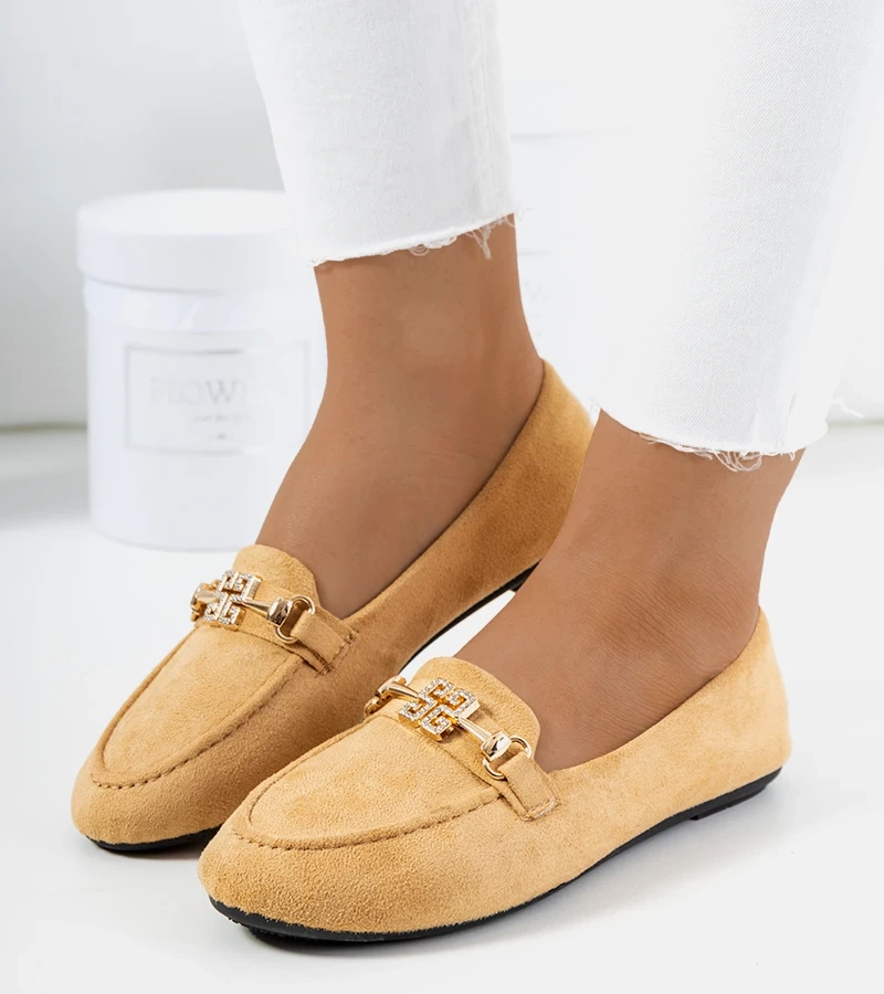 Arany díszítéssel ellátott bézs mokaszin Hashtag