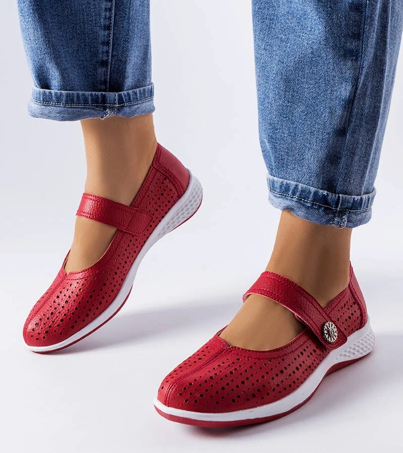 Vörös bőrből készült csipkés balerina cipő Morgnano
