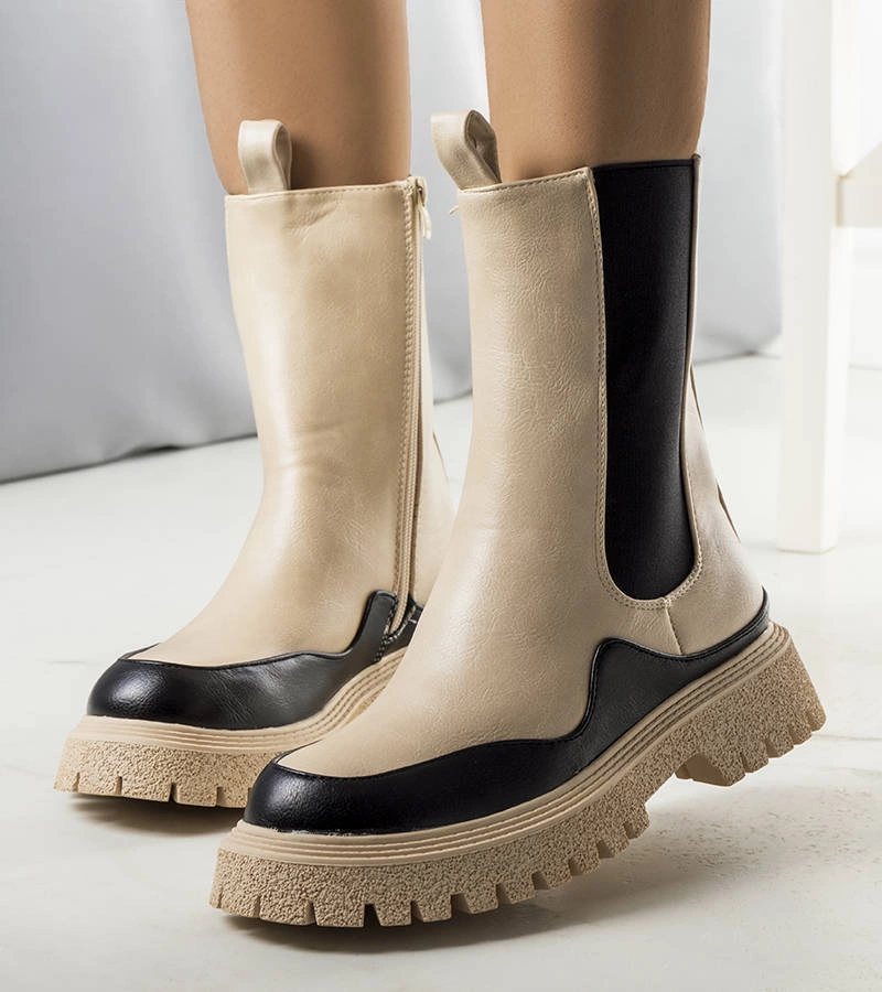 Niklas melegített bézs bokacsizma platformon