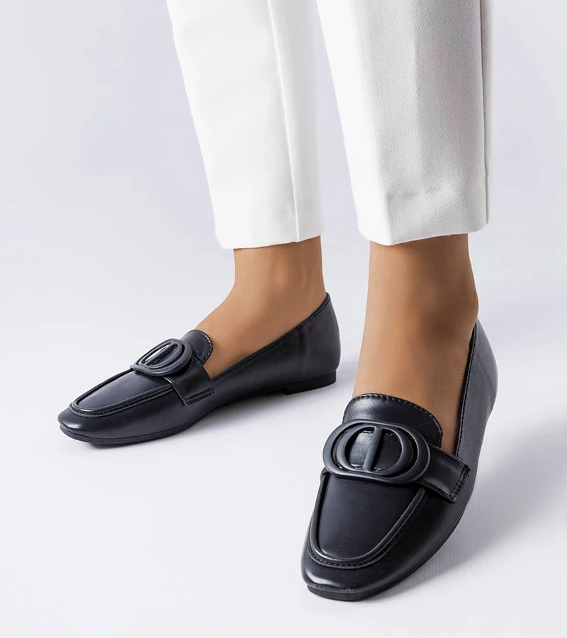 Fekete elegáns mokaszin Ouellet díszítéssel
