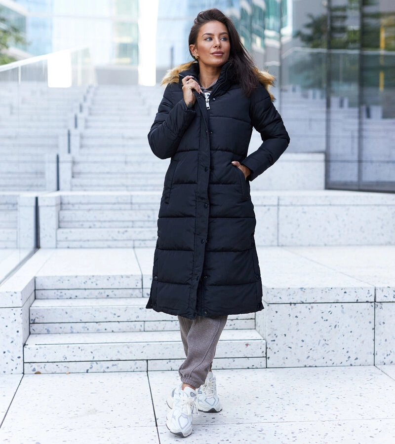 Fekete hosszú kabát cserélhető kapucnival Fela
