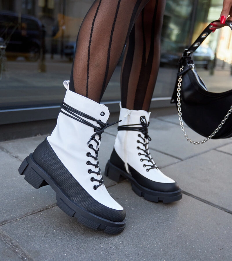 Fehér-fekete bélelt munkásbakancsok Apodaca