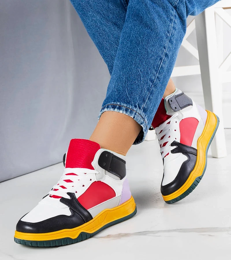 Fehér zoknis bokacsizma rózsaszín talppal Cali
