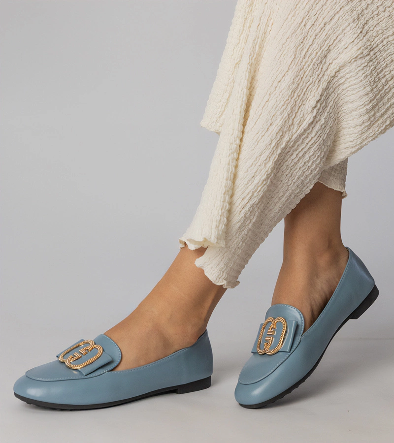 Sambada matt kivitelű női ék talpú sötétkék mokaszin